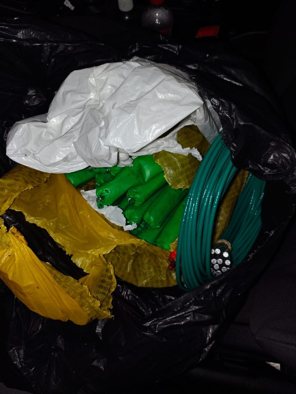 Images circulating on social media appear to show Sikhala handcuffed and seated near a roadside barrier alongside an elderly companion. Another photo shows what looks like explosives wrapped in a yellow plastic bag.
